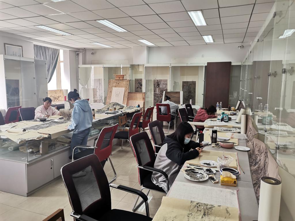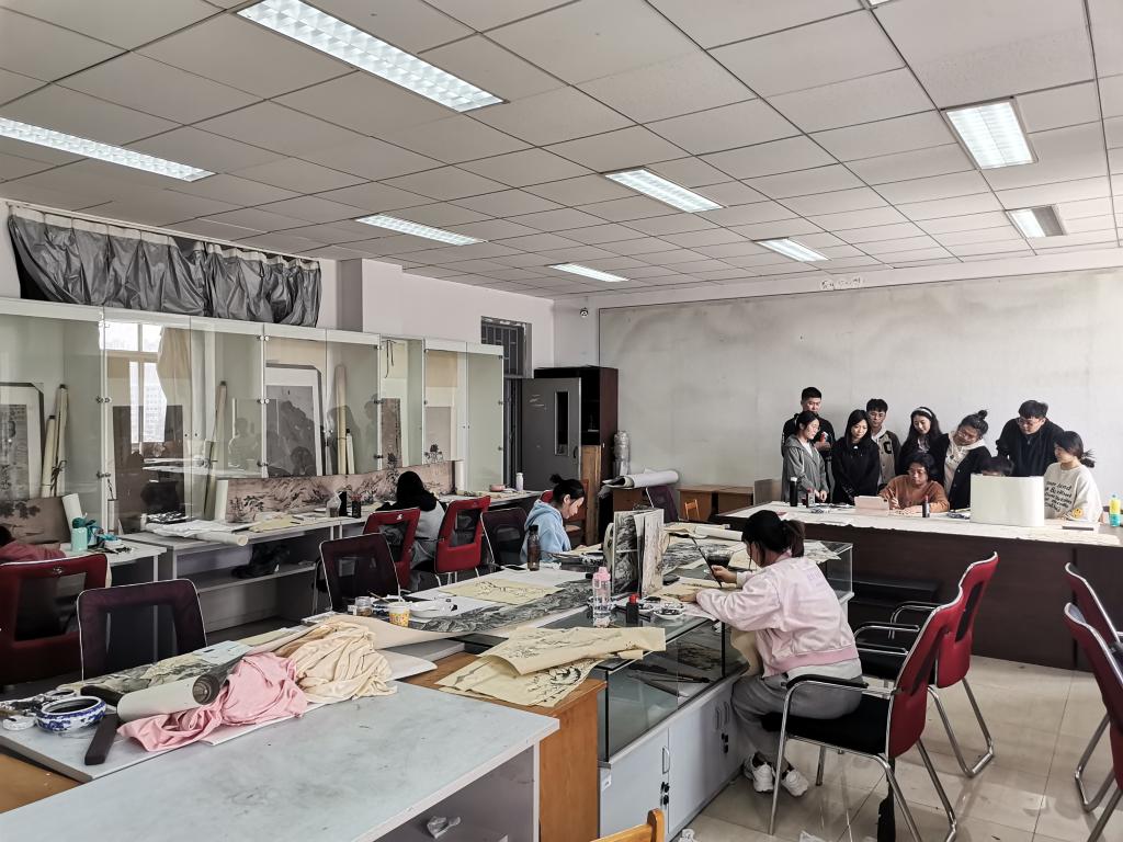 投入使用以来,开设专业课程有中国画材料与技法临摹、工笔花鸟、国画山水、工笔人物等课程。每学年承担教学任务200余学时。临摹室的建立符合美术学专业的教学要求,保障了中国画教学的开展。为培养中小学美术团队的审美与文化情感教育起到了支撑作用。