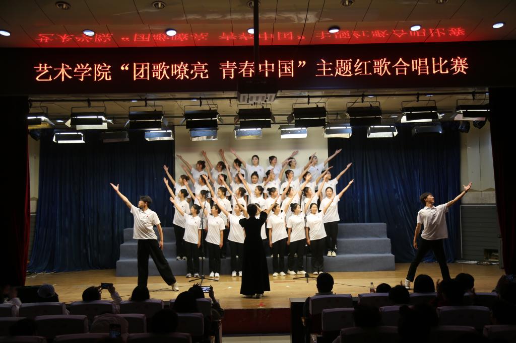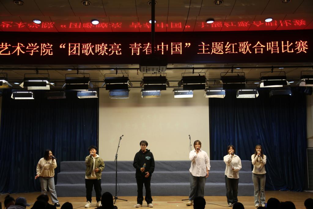 比赛中间,由麦克风社团的6位同学带来的歌曲《有我》,用青春之声展现青年人的的风骨与锋芒,获得的现场阵阵热烈掌声。经过评委打分,最终音乐学2403班荣获一等奖,音乐学2401班、2402班、舞蹈表演2401班荣获二等奖,美术学2402班、视觉传达2401班、美术学2401班、环境设计2401班荣获三等奖,音乐学2401班的杨雅茹同学获评最佳指挥奖。