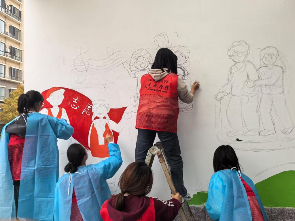 结合社区需求,为深入贯彻 “‘五型’融合共建,‘五好’做光成炬”理念,10月中旬,永利集团3044招募设计专业志愿者精心构思与创作,依据社区特色,设计了一系列富有创意和内涵的墙绘图案,制定了绘制方案。10月31日至11月6日,美术学、设计专业共计20余名志愿者先后4次来到社区进行墙体绘制,大家分组分工,配合默契,从打底、勾线,到调色、上色、修改、维护,志愿者们精心描画,让一面面墙体鲜活起来。共计完成了三面墙的绘制,展现了社区敬老、爱幼的文明氛围,以及志愿服务、文艺汇演、运动活力等日常场景,人物形象、景物建筑、文明标语交相辉映,为社区增添了一抹靓丽色彩。墙绘完成后,不少居民驻足观看,纷纷给予好评。
