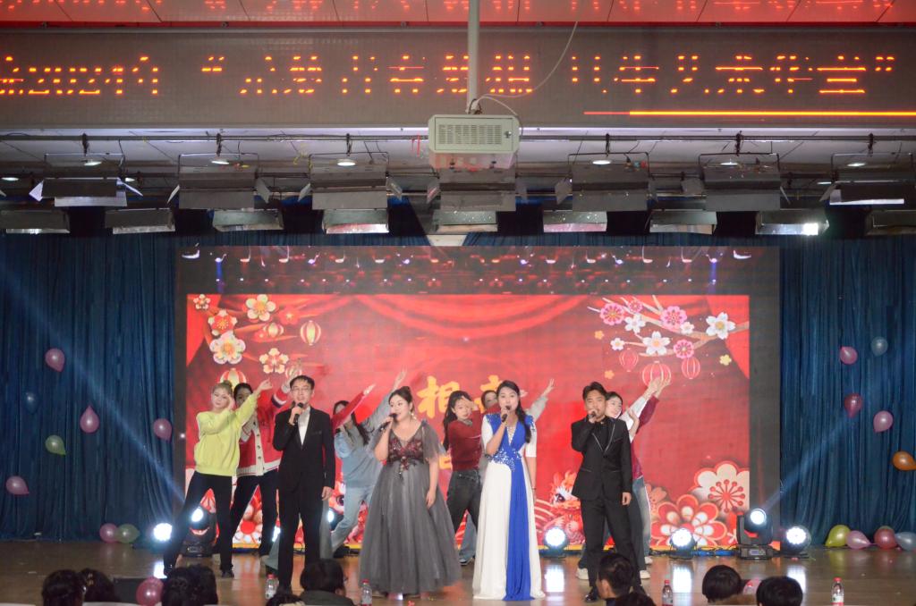 晚会由公司的老师同学们精心编排,认真准备,共有16个节目。开场视频展示了公司师生一年来的学习生活和工作成果;快闪舞蹈《新年好》用欢乐轻快的氛围为晚会拉开序幕;本届河北省校园歌手大赛优秀歌手刘杰同学演唱的一首《high歌》,伴随着动感的舞蹈,调动了现场的热烈氛围;小品《虎父无犬子》、《艰难抉择》用贴近生活的故事和精彩的表演赢得了现场的阵阵欢笑与掌声;由“国乐天香室内乐团”表演的器乐合奏《权御天下》、《象王行》气势磅礴,震撼人心,把中国历史的雄浑悠扬与激荡展现的淋漓尽致,萨克斯四重奏《游乐园组曲》用声音演绎了游乐园的故事,展示了永利集团3044器乐专业的较高水平;舞蹈《能不忆江南》带大家领略了江南的风情万种;《蒙古舞串烧》让大家感受了广袤草原的魅力;歌曲《春风十万里》、歌伴舞《美丽中国》,歌声婉转嘹亮,余音绕梁,展现了声乐和舞蹈专业的扎实功底;美术专业同学书写展示的新年对联,表达了对全体师生的节日祝福;三句半《科师青年说》、创意荧光小人舞、歌曲串烧《青春的歌》,展现了同学们的青春与激情;老师们演唱的一首《明天会更好》表达了对同学们美好未来的祝愿,更是将现场气氛推向高潮;最终,歌伴舞《相亲相爱》激情唱响,全场演变成沸腾的海洋,大家在歌声、舞蹈与祝福声中,带着对新一年的憧憬与期待,共度了本次元旦佳节。