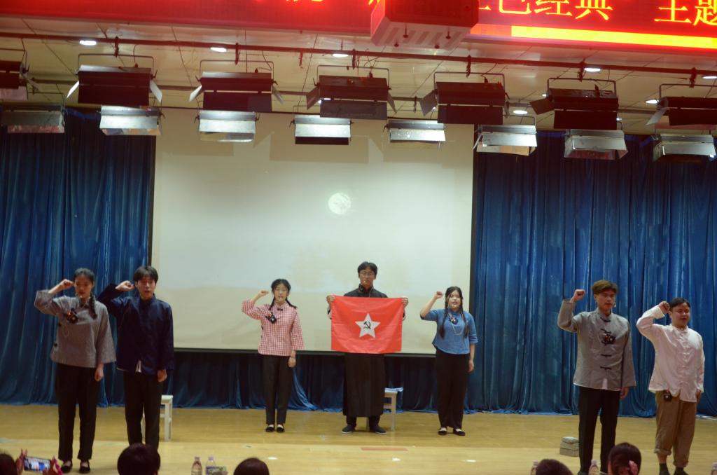 美术学2201班表演的《为中华之崛起而读书》,讲述了开国元勋周恩来总理心怀家国,少年立志的故事;美术学2202班表演的《星星之火》,以西南联大的员工抗日爱国运动为题材,塑造了闻一多等革命先烈为国发声、英勇无畏的光辉形象;环境设计2201班表演的《党旗在心中》,展示了国共合作破裂期间,甘溪党支部仅存的5名党员在与上级党组织失去联系的情况下,仍然坚守共产主义信仰,不畏艰险牺牲的斗争精神;音乐学2201班表演的《红岩》,演绎了江姐、孙明霞等地下党员在渣滓洞中与敌人坚决斗争,用信仰、期盼与深情绣出心中的五星红旗的感人故事;视觉传达2201班表演的《雷锋》,让我们重温了雷锋同志毫不利己、专门利人,为了人民的事业无私奉献的崇高精神,帮助当代青年汲取前行的力量;音乐学2202班表演的《我记得你,你就活着》,讲述了一个奋战在解放上海斗争中的小战士穿越到现代的上海纪念馆,与馆内的老员工志愿者进行的对话,故事有笑有泪,当看到小战士明知会牺牲还是义无反顾地选择回到战场,继续战斗的时候,现场观众无不为之动容。比赛中,参与演出的同学们全情投入,台词掷地有声,声情并茂,极具感染力,赢得观众们的阵阵掌声和由衷共鸣。