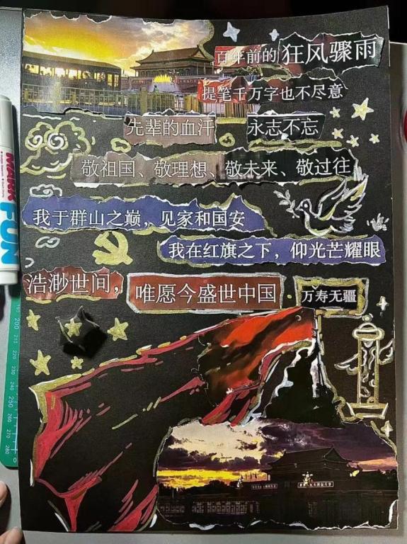为引导同学们感悟红色精神,用文字和图画创作的方式来展示自己对于国家民族的热爱,公司开展了“我以我手执新笔,我以我心向红旗”主题拼贴诗作品征集活动。