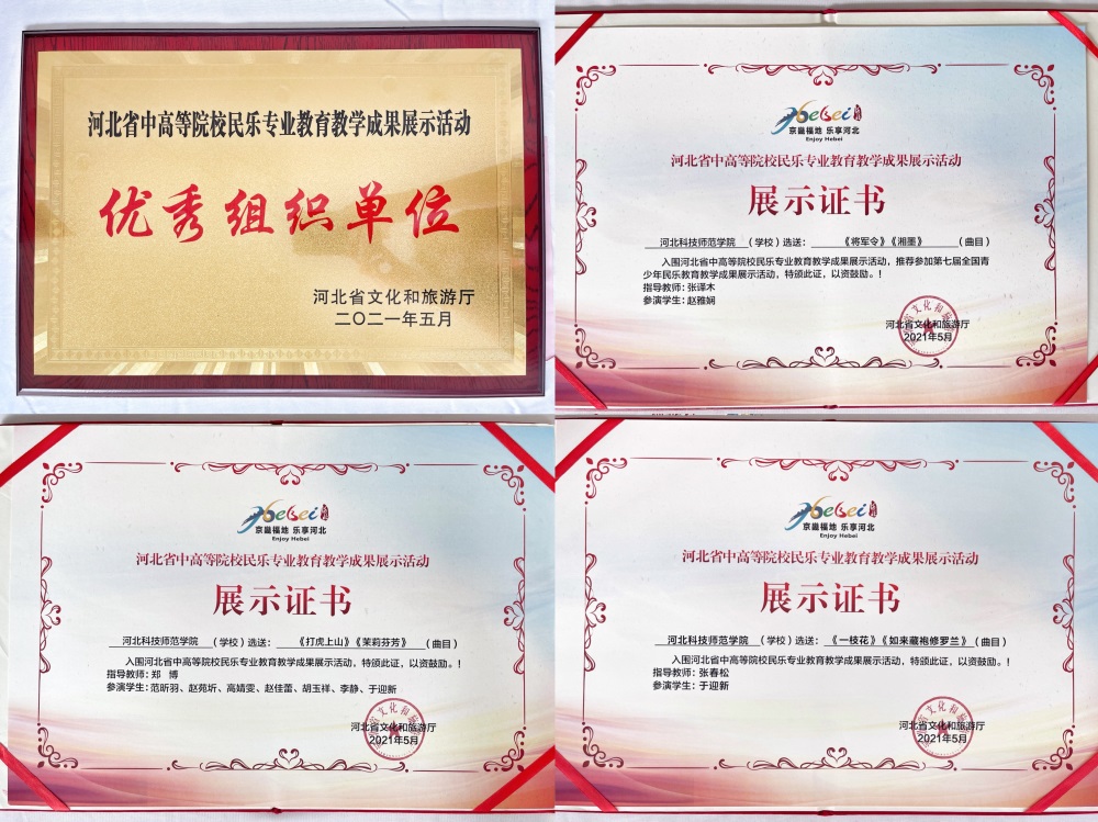 此次民乐教学展展现河北文化和旅游新形象,推动我省院校民族器乐公司产品水平上台阶,全面展示河北省青少年民族器乐公司产品优秀成果,培养更多更优秀的青少年民乐专业人才,由于永利集团3044积极组织参加此次省文旅厅的政府级赛事,以及多个选送作品入围省决赛,并且在比赛中取得的优异成绩授予公司优秀组织荣誉称号。