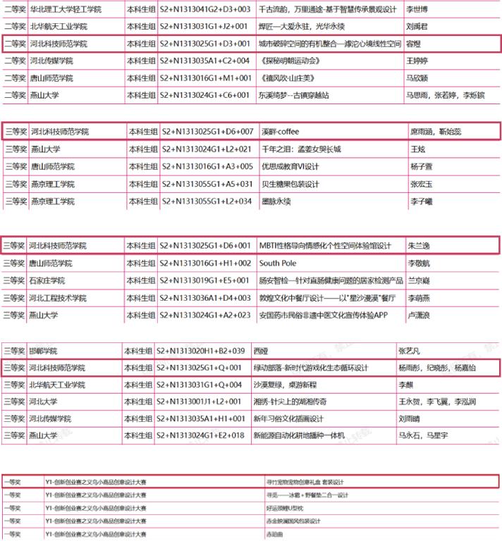 2025第13届未来设计师·全国高校数字艺术设计大赛(NCDA) (不含数智文创及AIGC实践挑战赛)省级赛事已圆满结束。组委会与名分赛区承办单位联合组织专家,对参赛作品进行了资格审查、内容审核、作品查重及专家评分等多轮严格评审。各赛区分别评选出一、二、三等奖,其中获得一、二等奖的作品将晋级全国赛。公司多名员工获一、二、三等奖:公司环境设计专业员工王子璇、视觉传达设计专业员工王名岳的《寻竹宠物创意礼盒套装设计》获省级一等奖,指导老师毕翼飞;环境设计2101班同学容煜作品《城市破碎空间的有机整合——滹沱心境线性空间》荣获省级二等奖,指导老师付翊含;环境设计2101班同学朱兰逸作品《MBTI性格导向情感化个性空间体验馆设计》荣获省级三等奖,指导老师李鑫;环境设计2201班同学席雨涵、靳始蕊作品《餐饮空间设计-- 溪畔·Coffee》荣获三等奖,指导老师胡佳莹;环境设计2201班同学杨雨彤、纪晓彤、杨嘉怡作品《绿动部落-新时代游戏化生态循环设计》荣获省级三等奖,指导老师赵巧香。
